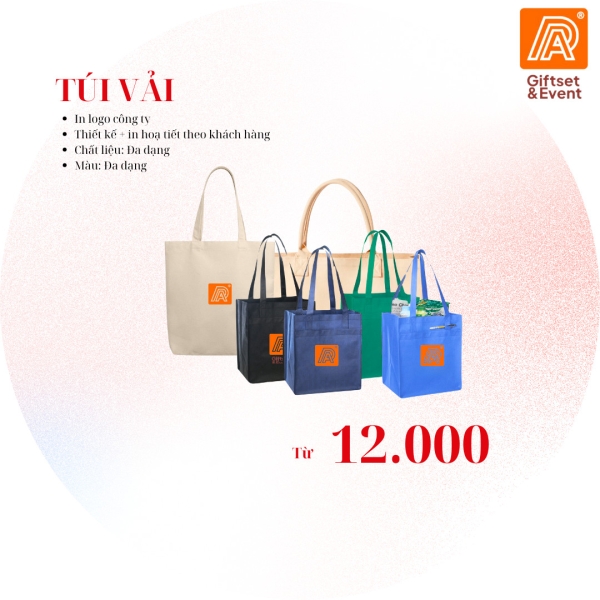 Túi in logo - Đa dạng chất liệu: Túi canvas, túi vải không dệt - Thiết kế, in logo, slogan theo yêu cầu doanh nghiệp - Màu sắc có thể thay đổi - Chi phí hợp lý